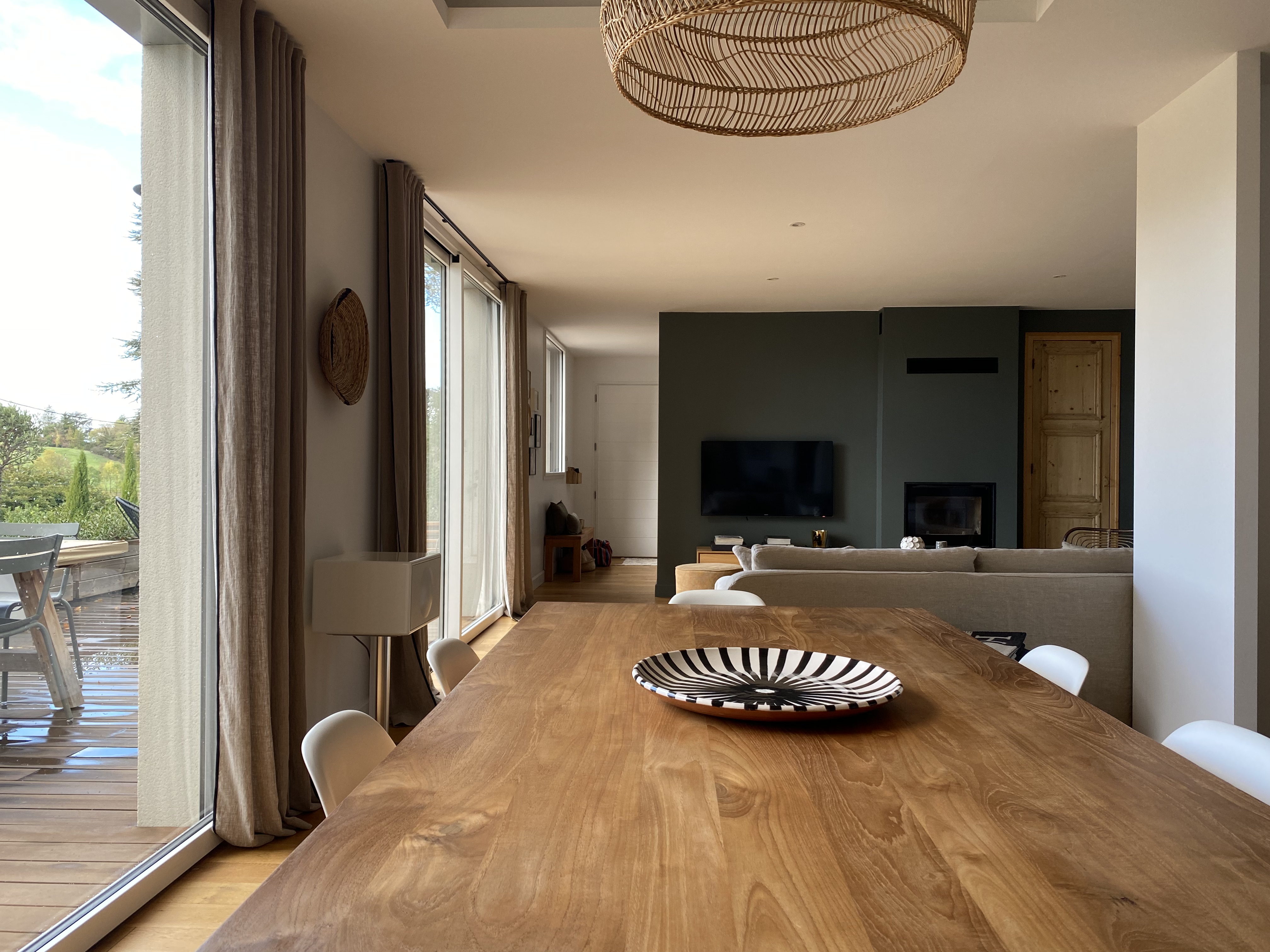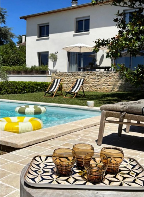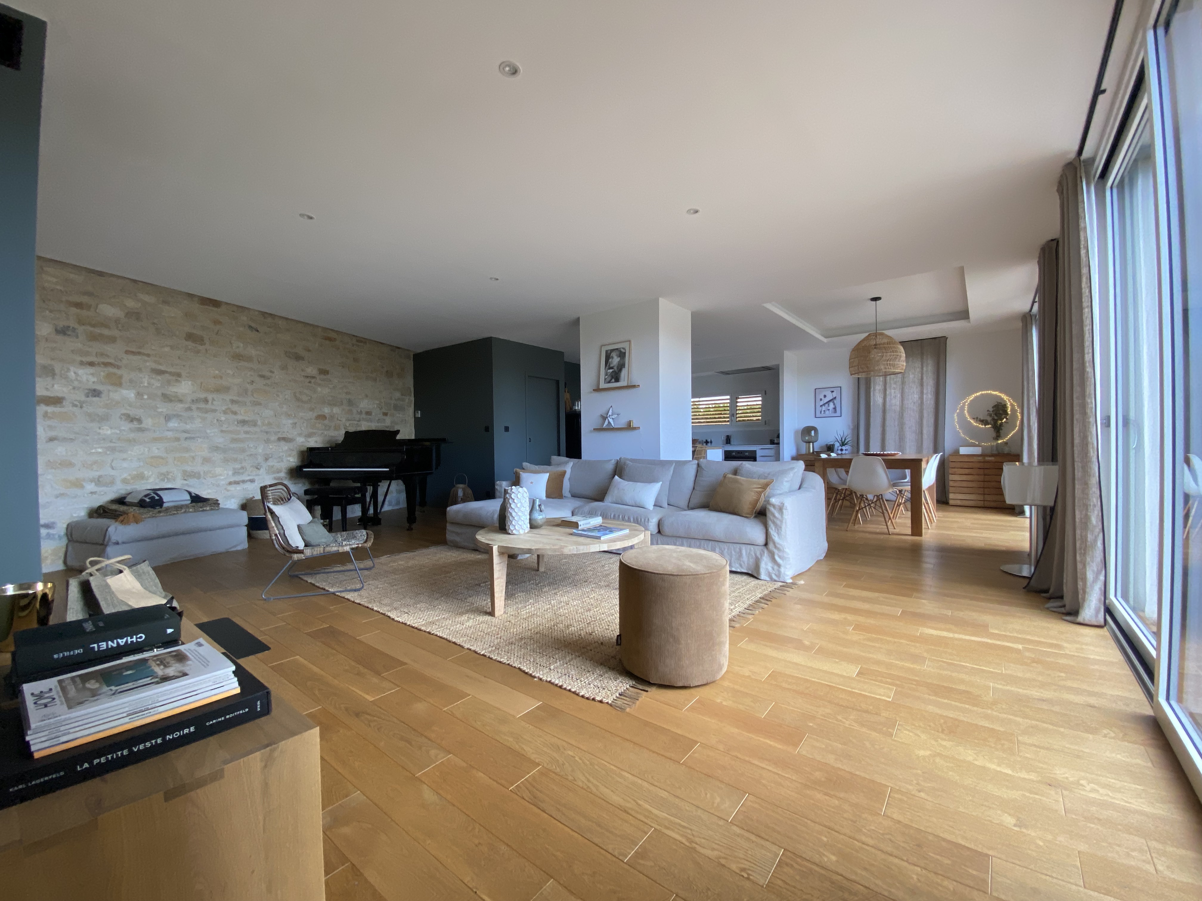 Esprit authentique et cosy pour cette maison des années 80 rénovée avec toutes les tendances actuelles : matières naturelles et tonalités douces en font un nid douillet. Piano demi-queue de collection et cheminée, à l'étages suite et 2 chambres enfants. Terrasse en bois devant l'espace living et piscine adjacente.