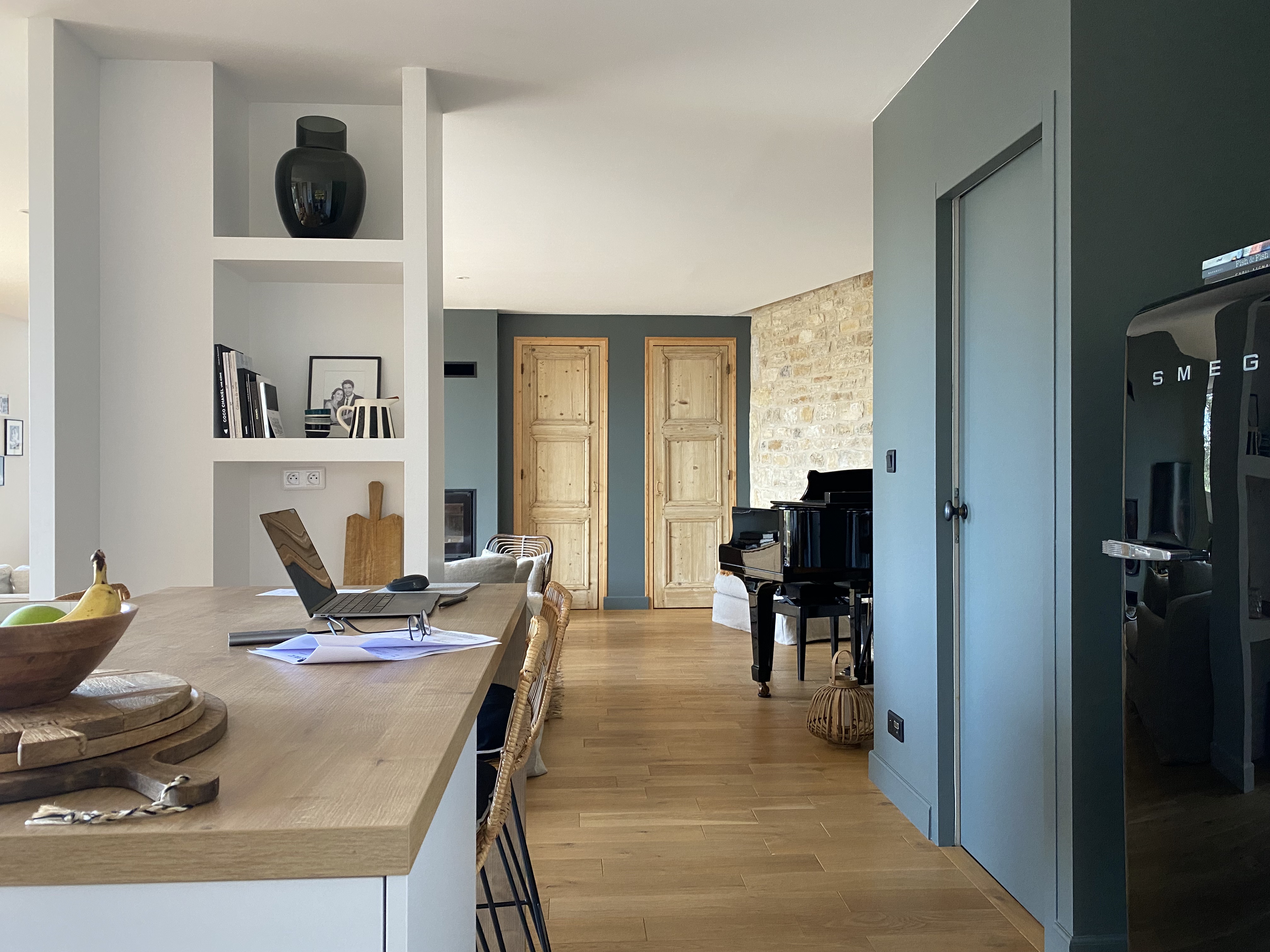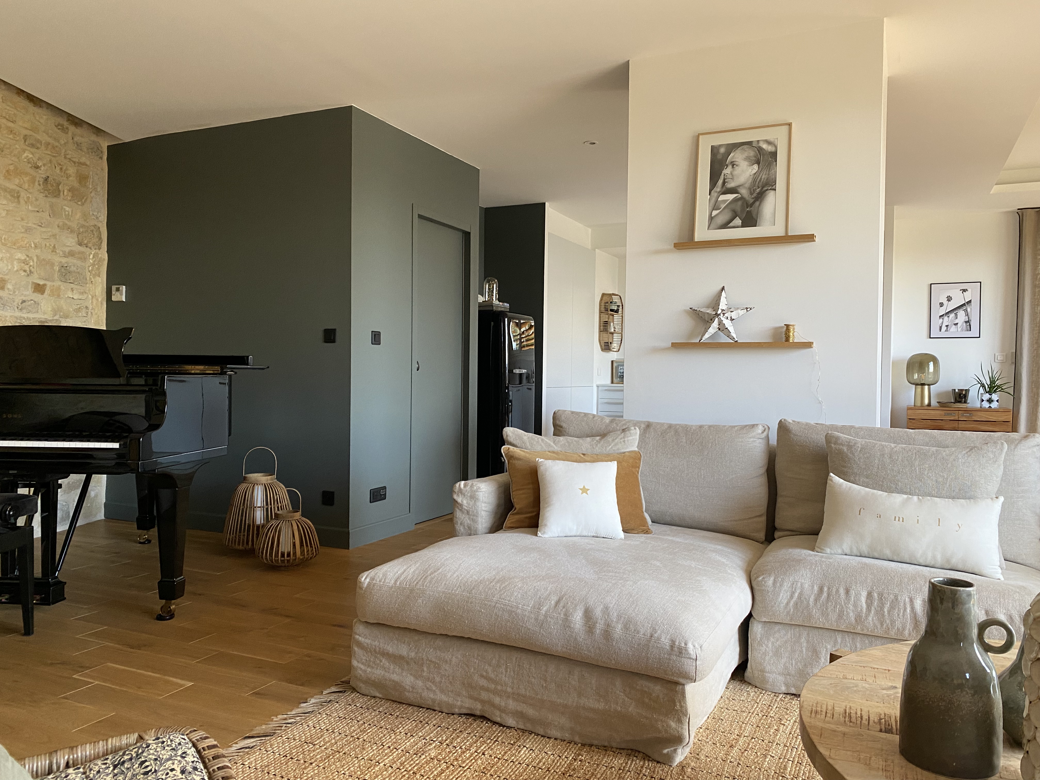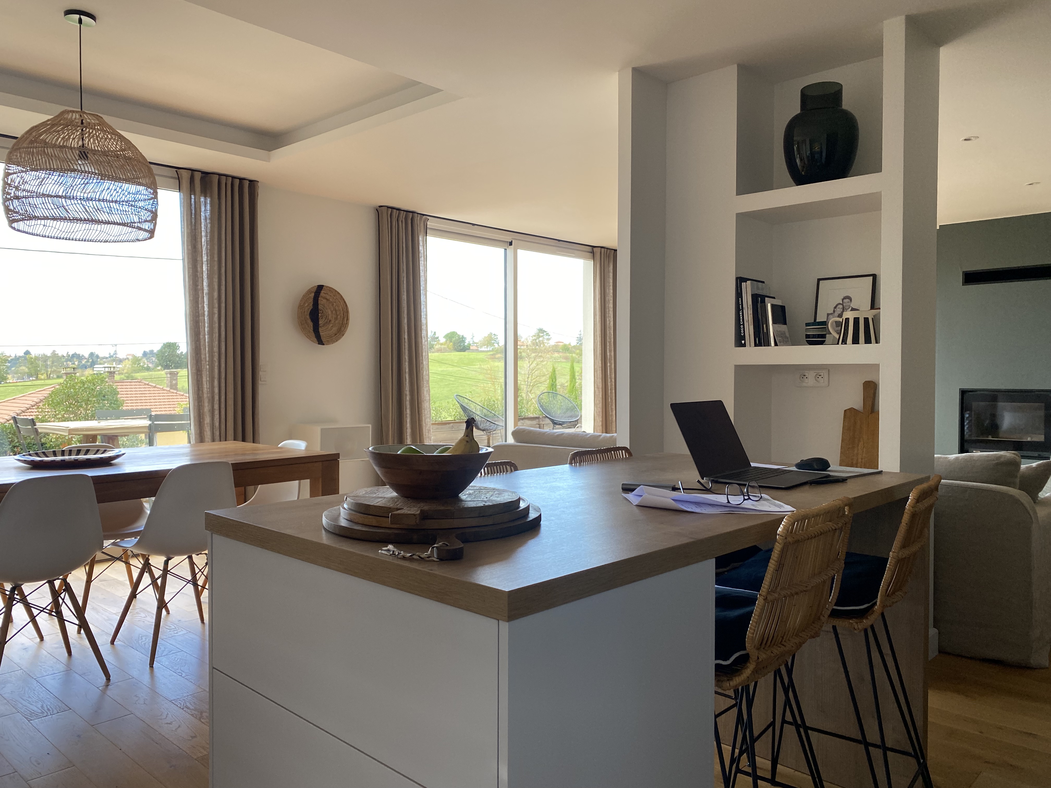 Esprit authentique et cosy pour cette maison des années 80 rénovée avec toutes les tendances actuelles : matières naturelles et tonalités douces en font un nid douillet. Piano demi-queue de collection et cheminée, à l'étages suite et 2 chambres enfants. Terrasse en bois devant l'espace living et piscine adjacente.