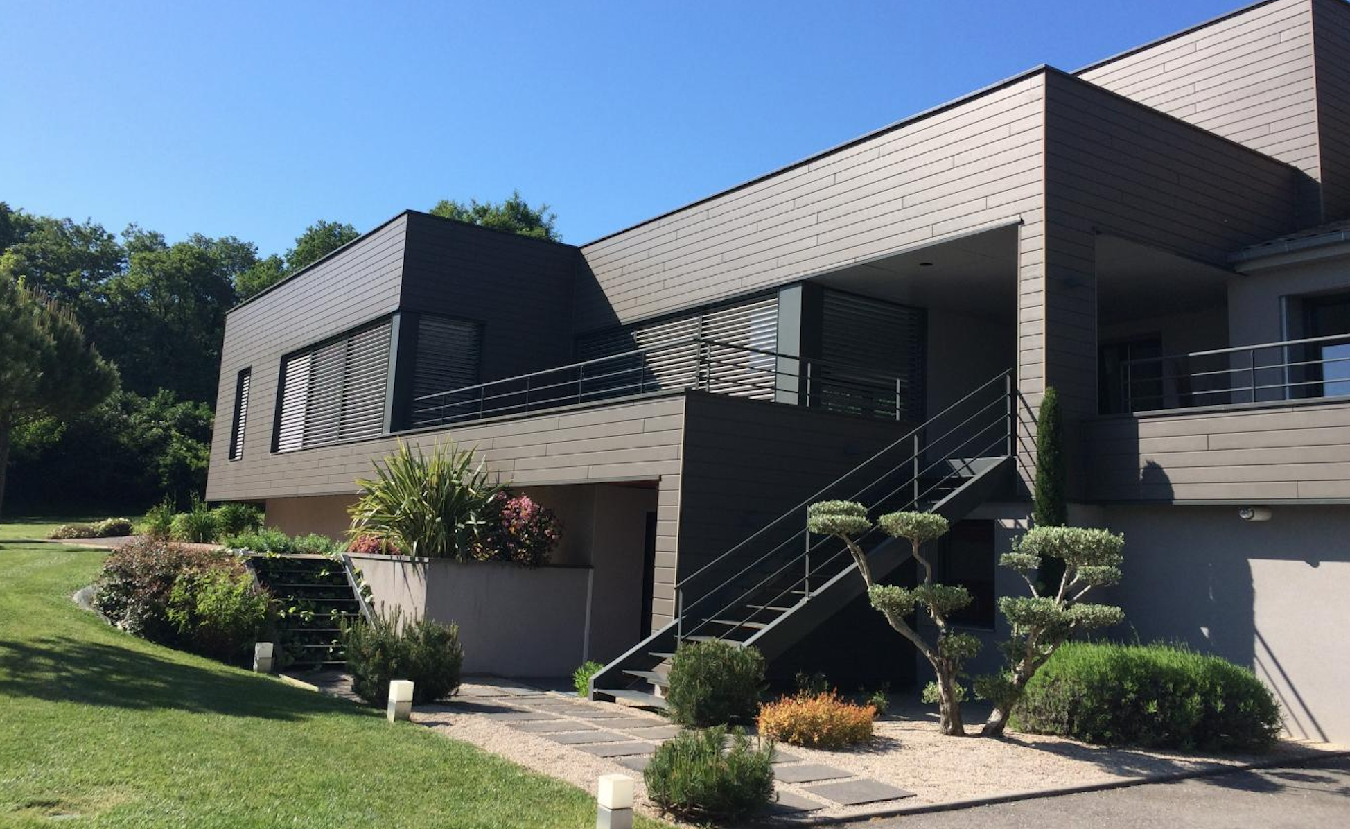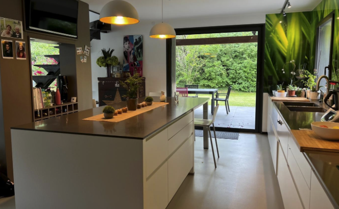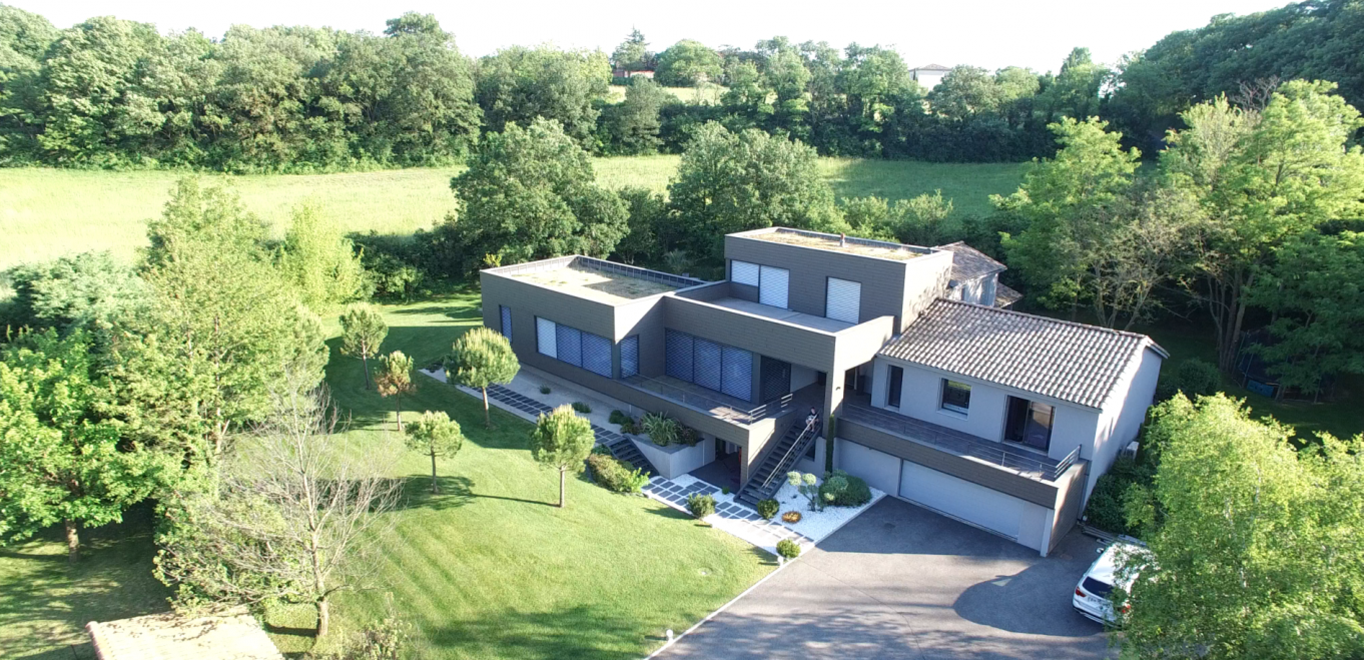 Maison d'architecte rénovée en 2017 sur 3 niveaux avec toit plat vegetalisé et toit traditionnel.